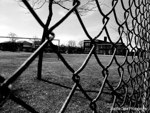 I took the photo on the right because I was interested by the view through the fence. I took the shot on a slight angle to gain a slightly different perspective and make it a bit more eye catching.