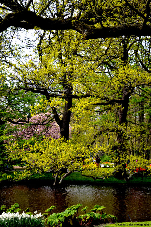 I took this photograph in Noordoostpolder, Holland when I visited the Tulip Festival. It’s pretty and ethereal with the water, trees and tulips. I recommend visiting during the Spring season and going to the Tulip Festival.