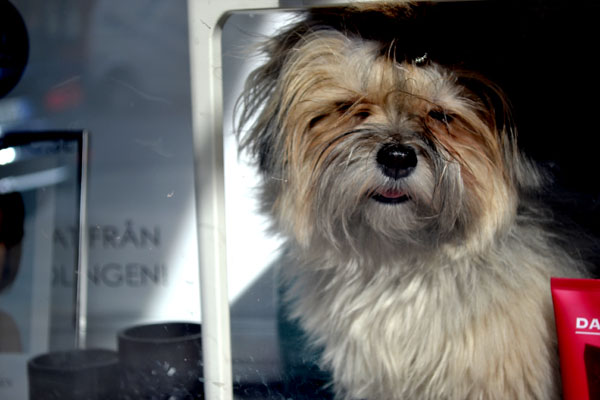 I took these photos in Stockholm. The dog was in the window of a hair salon and I thought she was a cutie.