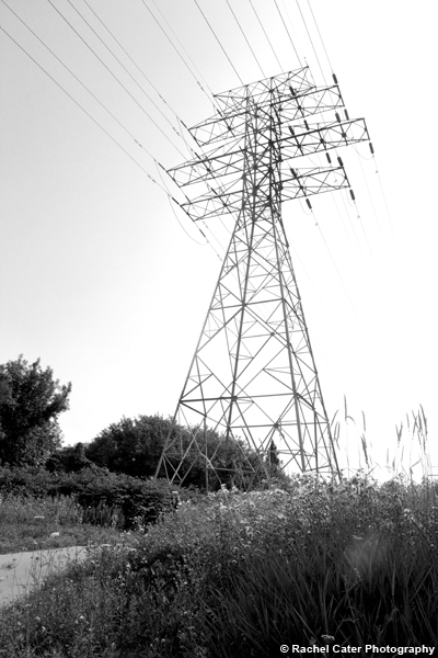 I took this photo in Toronto. I was interested by the shapes and by the contrast of the hydro tower set in nature.