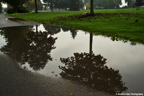 I was drawn to the beautiful reflection in the puddle. It was a misty morning when I took this photo.