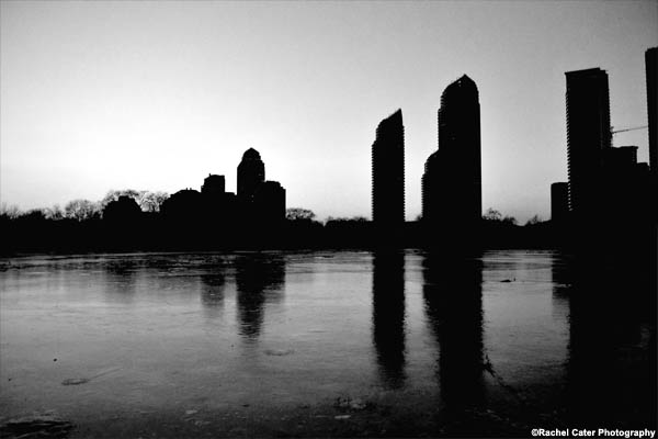 I took this photo at dusk. I was interested by the silhouettes and reflections.